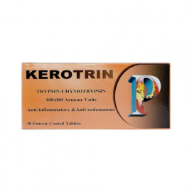 Kerotrin (Trypsin-Chymotrypsin) is an oral proteolytic enzyme mixture widely used to accelerate the repair of traumatic, surgical and orthopedic injuries. It shows high bioavailability without losing ..