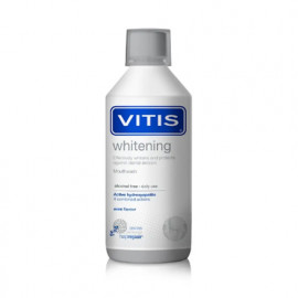 Vitis whitening mouthwash is specially formulated to effectively whiten teeth without damaging tooth enamel. Its combined formula eliminates and prevents stains, restoring the natural white shine of t..