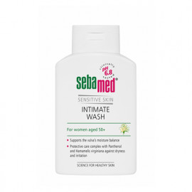 Feminine wash that hepls against dryness and irritation for women aged 50+-protective complex with panthenol and Hamamelis against dryness -the Ph 6.8 formula maintains the vulva moister balance...